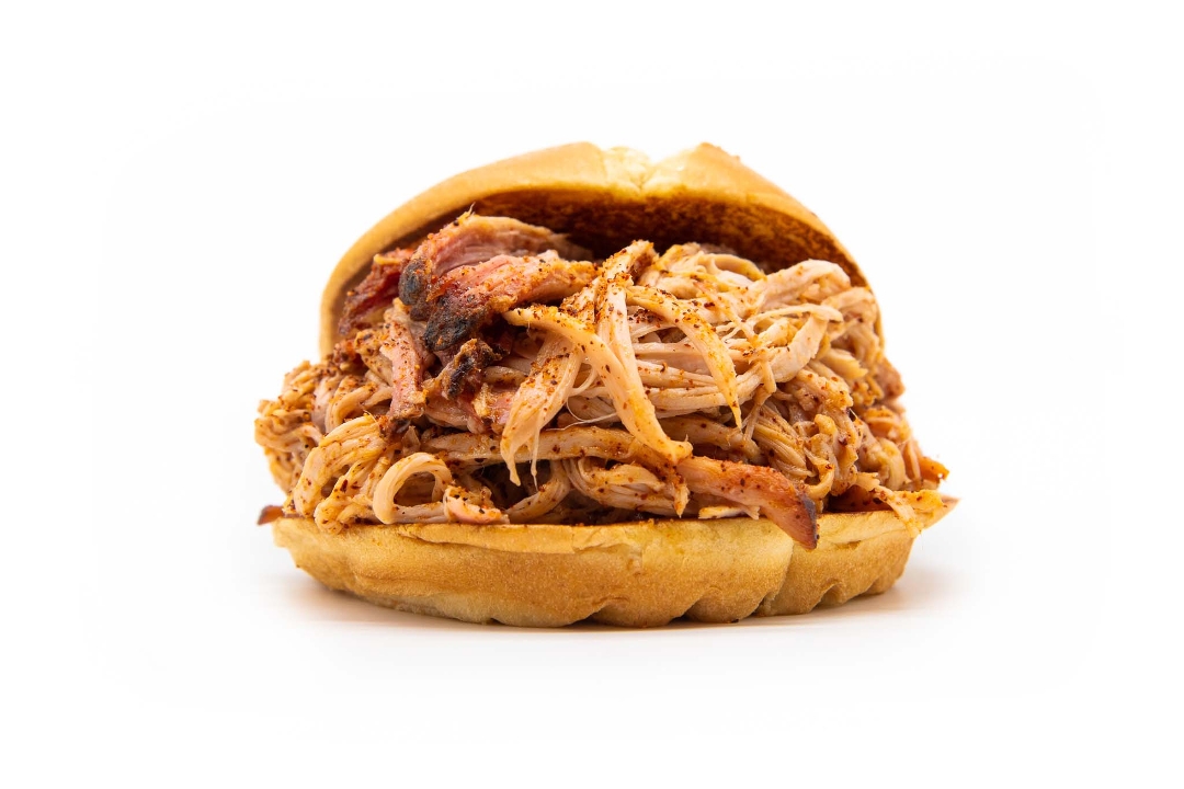 Pulled Pork Sandwich topped with an Apple Coleslaw.